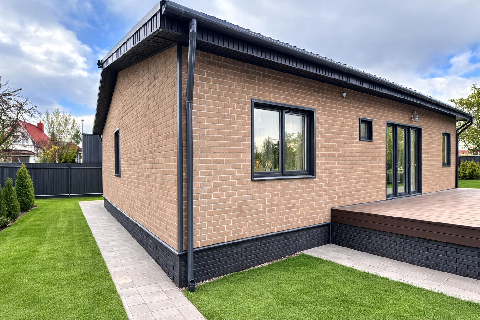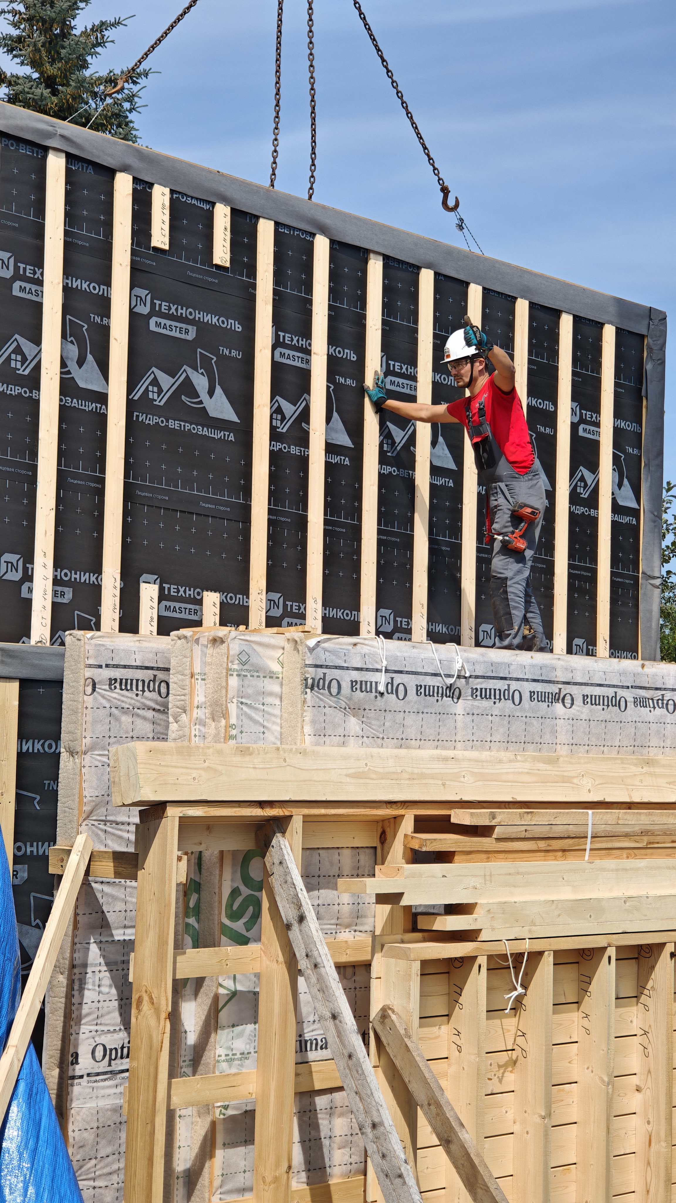- По фасаду - ветрозащитная пленка с обрешеткой 20х95 мм для вентиляции фасада и внешней отделки
